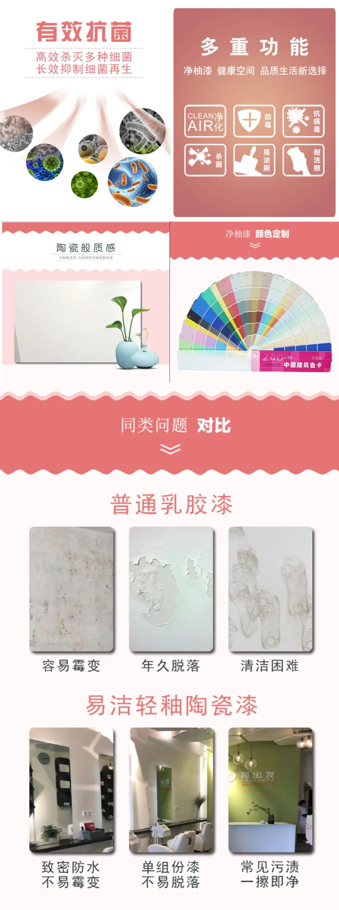 凈柚易潔輕釉陶瓷漆是一種單組份釉面質(zhì)感水性涂料,產(chǎn)品精選優(yōu)質(zhì)原材料,采用先進(jìn)工藝精制而成,具有優(yōu)秀的耐臟污性能,生活中常見的污漬(腳印,醬油)用濕毛巾能輕易擦除,涂料遮蓋力強(qiáng),裝飾效果優(yōu)異。綠色、環(huán)保,極低氣味。